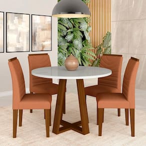 Conteúdo da Embalagem -Mesa com 4 cadeiras -Manual de Montagem -Acessórios para Montagem Observações Importantes - As imagens ambientadas são meramente ilustrativas e podem apresentar itens que não incorporam o produto; - Todos os nossos produtos são novos, acompanham documento fiscal e possuem garantia de 3 meses, essa garantia cobre somente defeitos de fabricação; - A entrega só será efetuada no endereço do CEP, caso o endereço seja diferente do CEP informado no pedido, a entrega terá cobrança adicional e o comprador arcará com as despesas; - Não realizamos entregas para zonas rurais, via caminhos fluviais e distritos, por isso não aceitamos CEP GERAL da região; - Não é possível realizar o agendamento de entrega do produto, é necessário que acompanhe o rastreio de seu pedido para saber a previsão de entrega; - As entregas somente serão realizadas para um responsável maior de idade (+18); - Enviamos para diversos estados, sendo assim nossas entregas são realizadas por transportadoras parceiras de nossa empresa. Confira as dimensões antes da compra e certifique-se de que o produto passará por elevadores, portas e corredores já que nossa entrega não inclui a subida de lances de escada, transporte por elevador e o lançamento de produtos, em caso de condomínios residenciais a entrega é feita somente até a portaria. Todas as entregas são realizadas em dias e horários comerciais; - Ao receber os seus produtos observe se a embalagem se encontra em perfeitas condições. Se você adquiriu algum móvel, confira atentamente a quantidade de volumes e o aspecto físico das embalagens. Confira também se a cor do móvel está de acordo com o seu pedido; - O prazo de cancelamento por arrependimento é de até 7 dias corridos a contar da data de recebimento; - Os produtos e assistências são enviados DESMONTADOS, MONTAGENS E DESMONTAGENS recomendamos sempre a contratação de um montador profissional e é válido lembrar que o custo desses serviços é por conta do comprador; - Objetos decorativos que aparecem na foto não acompanham o produto; - Evitar a exposição direta à luz solar e à umidade; - Para limpeza, limpar com pano macio e seco, não utilizar qualquer outro tipo de produtos químicos; - As cores do produto podem variar de acordo com o monitor, a iluminação do ambiente ou sua percepção visual.