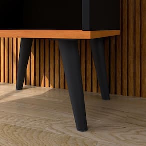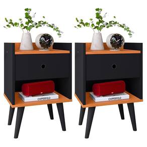 Mesa Cabeceira 1 Gaveta Organizadora Nicho Aberto Decorativo Pés Palito Retrô Mesinha Quarto - Preto/Cinamomo - RPM Móveis - Preto