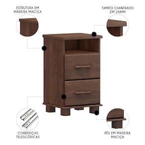 Mesa Cabeceira 44cm Para Quarto 2 Gavetas Eduarda Café F07