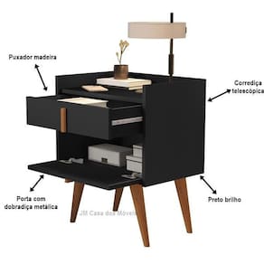 Mesa de Cabeceira DAVI 1188 Plus cor Preto - Comprar Moveis para sua Casa Mesa de cabeceira Davi 1188 estilo retrô, pés palito, embalado com caixa reforçada nas laterais para não ocorrer no transporte. Produto exclusivo Comprar Móveis em Casa para deixar seu ambiente mais bonito e sofisticado Procure nossas redes sociais e confira todos nossos produtos e qualidade de atendimento : Produto com video de montagem no nosso canal, acesse nossas redes sociais: Comprar Móveis em Casa DIMENSÕES DO PRODUTO MONTADO Altura: 0,60 cm Largura: 0,48 cm Profundidade: 0,31 cm Caractersticas: 1 Gaveta corrediça TELESCÓPICA 1 Porta dobradiça metálica Pés Palito madeira maciça MDF 15MM As cores deste produto possui brilho. Puxadores em madeira. MONTAGEM: Este produto acompanha kit de montagem + manual de instrução detalhando passo a passo de como montar. A montagem do produto deverá ser feita por um , para que não ocorram danos no produto. não nos responsabilizamos por erro de montagem Atenção: A montagem não é oferecida pela Comprar Móveis em Casa, a montagem do produto é por conta do comprador. OBSERVAÇÕES IMPORTANTES: A é de 90 dias por defeitos de fabricação. Se no ato de recebimento do produto o cliente verificar que o produto não está em prefeito estado, principalmente por ocasião de transporte irregular, o cliente deverá recusar o recebimento do produto e entrar em contato para resolver o problema. Podem haver variações referentes à tonalidade das cores expressas nas fotos, por conta de fatores como iluminação e brilho de cada monitor/celular. Fotos meramente ilustrativas, não acompanham os produtos de decoração. Atenção, se atente a politica de troca/devolução da empresa. Marca: Não Informado Ean: 7795296367076