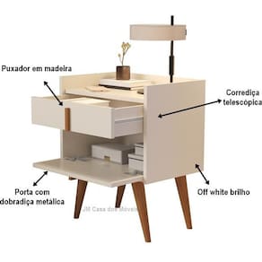 Mesa cabeceira denise 1 gaveta 1 porta pés palito off white
