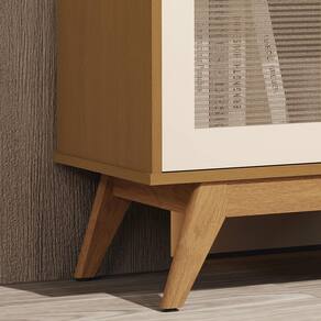 A porta com usinagem frontal confere um toque sofisticado e esconde com discrição objetos pessoais, mantendo o ambiente sempre organizado.
