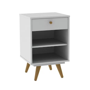 - Cômodo Indicado: Quarto - Produto Infantil?: Não - Quantidade de Pés: 4 - Medida do Produto Montado (LXCXA): 38,8cmx42,5cmx66,4cm - Peso Máximo Suportado: 10kg - Acabamento: Pintura UV - Escala de Brilho: Acetinado - Peso do Produto Montado: 13kg - Produto Necessita de Montagem?: Sim - Quantidade de Gaveta: 1 - Tipo de Gaveta: Gaveta com corrediças deslizantes(roldanas). - Quantidade de Prateleiras: 2 - Tipo de Prateleira: Fixa - Volumes: 1 - Garantia: 3 Meses - Recomendações de manutenção: Pano umedecido. Não aplicar lustra móveis.
