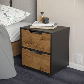 Mesa de cabeceira retro prime com 2 gavetas pés anti umidade cor preto / freijó