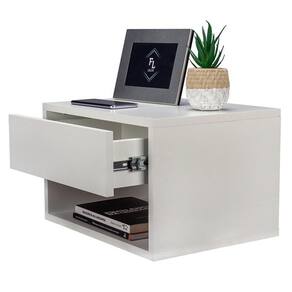 Mesa de cabeceira suspensa com 50cm gaveta em cima enviamos montada em mdf Enviamos montado - medidas: 50cm larg x 30cm alt x 30cm prof material: 15mm / corrediça telescópica acabamento: fosco fixação: cantoneiras 2 furos acompanha buchas e parafusos para instalação Marca: Fl Decor