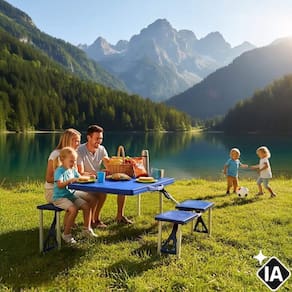 Aproveite seus momentos de lazer com mais conforto e funcionalidade usando a Mesa Camping Dobrável em Polipropileno com Banquetas ZELT perfeita para transformar qualquer lugar em um ambiente aconchegante e prático.