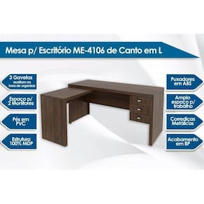 Mesa Canto p/Escritório ME4106 c/ 3 Gavetas Branco - Tecno Mobili