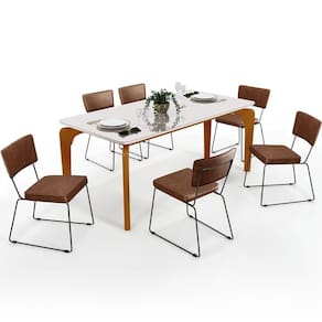 Percebemos hoje mais do que nunca o quanto os momentos com a família e os amigos são imprescindíveis, as refeições os tornam memoráveis e são uma ótima maneira de reunir a todos e colecionar lembranças especiais. A Mesa Capri 160cm Off White Com 6 Cadeiras Allana B05 Couríssimo Marrom - Lyam Decor vem justamente com essa proposta, seu tampo com bordas suavemente arredondadas transmite suavidade e contrasta maravilhosamente com as estruturas de aço com pegada industrial.