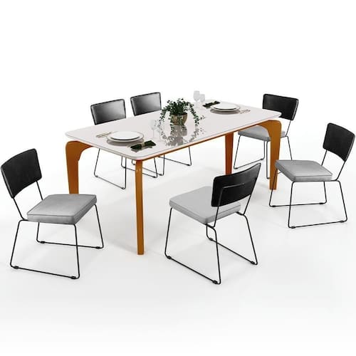 Percebemos hoje mais do que nunca o quanto os momentos com a família e os amigos são imprescindíveis, as refeições os tornam memoráveis, são uma ótima maneira de reunir a todos e colecionar lembranças especiais. A Mesa Capri 160cm Off White Com 6 Cadeiras Allana B05 Couríssimo Preto Linho Cinza - Lyam Decor vem justamente com essa proposta, seu tampo com bordas suavemente arredondadas transmite suavidade e contrasta maravilhosamente com as estruturas de aço com pegada industrial.