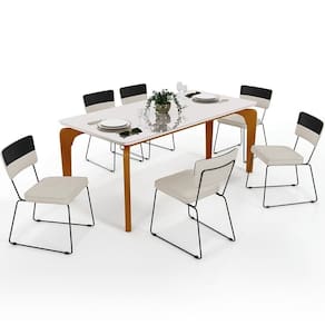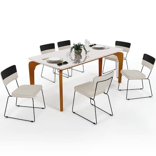 Percebemos hoje mais do que nunca o quanto os momentos com a família e os amigos são imprescindíveis, as refeições os tornam memoráveis, são uma ótima maneira de reunir a todos e colecionar lembranças especiais. A Mesa Capri 160cm Off White Com 6 Cadeiras Allana B05 Faixa Corano Preto Linho Champagne - Lyam Decor vem justamente com essa proposta, seu tampo com bordas suavemente arredondadas transmite suavidade e contrasta maravilhosamente com as estruturas de aço com pegada industrial.