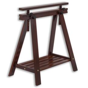 Mesa Cavalete Tabaco Escuro Cor: Preto Cavaletes com ótimo acabamento produzido com madeira de reflorestamento que ira deixar seu ambiente de trabalho com ar clean e de organização.São necessarios compra dois cavaletes para compor o ambiente.Altura varia de 73cm a 84 cm, regulagem de 2 em 2 centimetros-base Largura de 40cm -Comp da base 66 -Apoio para vidro 69cm -Peso 6,00 kg
