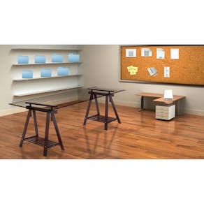 Cavaletes com ótimo acabamento produzido com madeira de reflorestamento que ira deixar seu ambiente de trabalho com ar clean e de organização.São necessarios compra dois cavaletes para compor o ambiente.