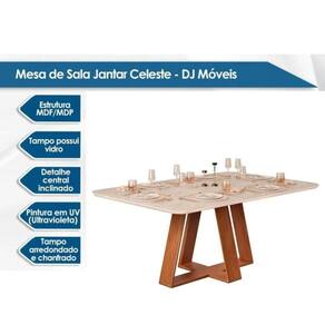 A Mesa Celeste e o que voce precisa para decorar a sua sala de jantar, ela possui um design moderno em formato trapezio inclinado e com pecas dispostas em formato de cruz, criando um desenho dinamico e muito elegante. Nao podemos esquecer que esta mesa ainda te possibilita guardar as cadeiras embaixo do tampo, otimizando o espaco da sua sala de jantar e facilitando a limpeza. O tampo possui vidro pintado aplicado na madeira, aumentando a durabilidade