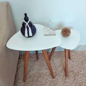 Mesa Centro Lateral Triangular MDF Branca Pés Palito 40x50cm