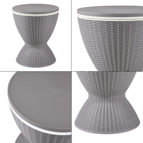 Perfeita para quem gosta de reunir amigos e manter as bebidas sempre geladas, a Mesa Champanheira Cooler une design moderno, resistência e versatilidade. Com capacidade para 30 litros até 40 latas de 350 ml com gelo , ela funciona como mesa de apoio, suporte para bebidas e balde térmico. Produzida em polipropileno de alta resistência, suporta até 74 kg, é fácil de limpar e conta com acabamento fosco que protege contra umidade e raios UV. Ideal para festas, churrascos e momentos ao ar livre. Ficha TécnicaModelo: Mesa Champanheira - Cooler Largura: 48,5 cm Comprimento: 48,5 cm Capacidade: 30 L / 8 galões - comporta até 40 latas de 350 ml com gelo Peso: 7 kg Suporte de Carga: até 74 kg Cor: Cinza Material: Polipropileno PP de alta resistência, com reforços internos para suportar peso e manter isolamento térmico Superfície: Lisa, fácil de limpar e que evita acúmulo de sujeira Acabamento: Fosco, resistente à umidade e com proteção contra raios UV Produto Enviado: Desmontado Dimensão da Caixa: 45 cm x 45 cm x 50 cm Resistência:
