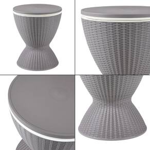 Perfeita para quem gosta de reunir amigos e manter as bebidas sempre geladas, a Mesa Champanheira Cooler une design moderno, resistência e versatilidade. Com capacidade para 30 litros até 40 latas de 350 ml com gelo , ela funciona como mesa de apoio, suporte para bebidas e balde térmico. Produzida em polipropileno de alta resistência, suporta até 74 kg, é fácil de limpar e conta com acabamento fosco que protege contra umidade e raios UV. Ideal para festas, churrascos e momentos ao ar livre. Ficha TécnicaModelo: Mesa Champanheira - Cooler Largura: 48,5 cm Comprimento: 48,5 cm Capacidade: 30 L / 8 galões - comporta até 40 latas de 350 ml com gelo Peso: 7 kg Suporte de Carga: até 74 kg Cor: Cinza Material: Polipropileno PP de alta resistência, com reforços internos para suportar peso e manter isolamento térmico Superfície: Lisa, fácil de limpar e que evita acúmulo de sujeira Acabamento: Fosco, resistente à umidade e com proteção contra raios UV Produto Enviado: Desmontado Dimensão da Caixa: 45 cm x 45 cm x 50 cm Resistência: