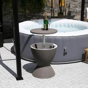 Perfeita para quem gosta de reunir amigos e manter as bebidas sempre geladas, a Mesa Champanheira Cooler une design moderno, resistência e versatilidade. Com capacidade para 30 litros até 40 latas de 350 ml com gelo , ela funciona como mesa de apoio, suporte para bebidas e balde térmico. Produzida em polipropileno de alta resistência, suporta até 74 kg, é fácil de limpar e conta com acabamento fosco que protege contra umidade e raios UV. Ideal para festas, churrascos e momentos ao ar livre. Ficha TécnicaModelo: Mesa Champanheira - Cooler Largura: 48,5 cm Comprimento: 48,5 cm Capacidade: 30 L / 8 galões - comporta até 40 latas de 350 ml com gelo Peso: 7 kg Suporte de Carga: até 74 kg Cor: Cinza Material: Polipropileno PP de alta resistência, com reforços internos para suportar peso e manter isolamento térmico Superfície: Lisa, fácil de limpar e que evita acúmulo de sujeira Acabamento: Fosco, resistente à umidade e com proteção contra raios UV Produto Enviado: Desmontado Dimensão da Caixa: 45 cm x 45 cm x 50 cm Resistência: