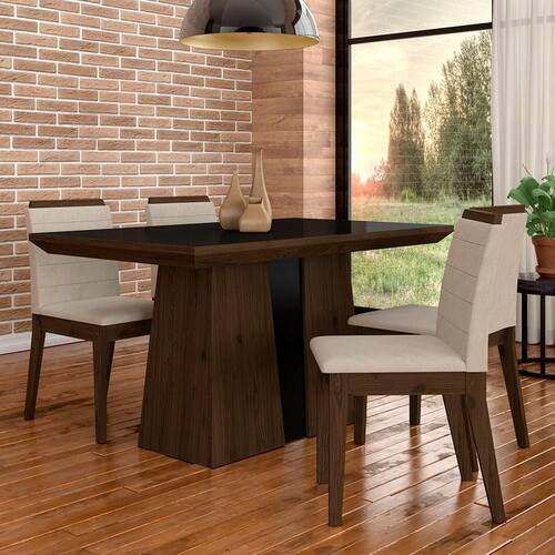 A mesa com 4 cadeiras Brisa é uma modelo marcante e que brilha por si só, deixe sua sala de jantar encantadora com esse conjunto!