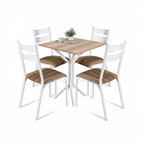 Design elegante e prático: Tampo quadrado de 0,68 x 0,68 m com estilo moderno, fácil manutenção e linhas refinadas que se adaptam a qualquer decoração.Qualidade superior dos materiais: Mesa em MDP BP (chapas de madeira industrial de média densidade), superior à pintura UV, ideal para áreas úmidas com maior durabilidade e resistência; cadeiras com estrutura e pés em aço carbono High-Steel de alta densidade, oferecendo proteção contra ferrugem e robustez.Estrutura reforçada: Tubo de aço carbono com tratamento em 8 estágios para a mesa, garantindo estabilidade; assento das cadeiras em madeira estofada com espuma e corino sintético para conforto e toque agradável.Versátil e funcional: Perfeito para cozinhas, salas de jantar ou varandas, com capacidade para 4 lugares e suporte de até 100 kg por cadeira, mantendo firmeza e segurança.Montagem descomplicada: Projetado para assembly média, podendo ser montado por uma ou duas pessoas com manual incluso; sapatas de proteção nos pés evitam riscos no piso e aumentam a estabilidade.Fácil manutenção: Limpeza simples para preservar a longevidade, evitando exposição à umidade, sol direto ou produtos químicos.Detalhes Técnicos da Mesa: