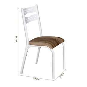 Largura: 37 cmProfundidade: 49 cmAltura total: 85 cmAltura do assento ao chão: 45 cmEstrutura: Aço carbono High-Steel com sapatas de proteçãoAssento: Madeira estofada com espuma e revestida em corino sintéticoCapacidade: Até 100 kg por cadeiraItens inclusos: 4 cadeiras (em 2 kits)Complexidade de montagem: Média (recomendada para duas pessoas ou com auxílio técnico)Garantia: 3 meses contra defeitos de fabricaçãoCuidados Importantes, Limpeza e Manutenção: