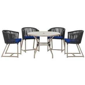 Descubra a Elegância e Durabilidade da Mesa de Jantar Roma e Cadeiras Noronha. Combinando estilo e resistência, esta Mesa e cadeiras traz o melhor do design contemporâneo em alumínio com micro pintura e acabamento em corda náutica. O estofado impermeável completa o conforto e a funcionalidade, tornando-a ideal para ambientes externos e internos.