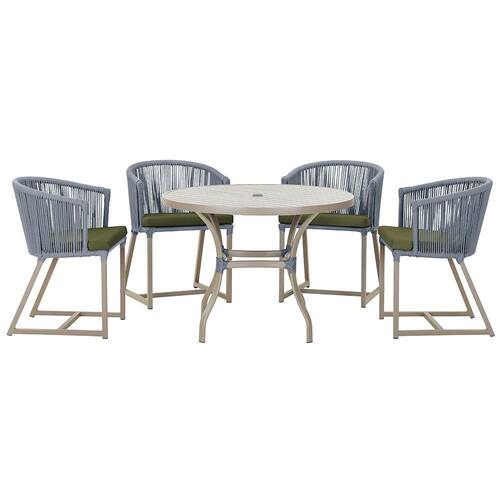 Descubra a Elegância e Durabilidade da Mesa de Jantar Roma e Cadeiras Noronha. Combinando estilo e resistência, esta Mesa e cadeiras traz o melhor do design contemporâneo em alumínio com micro pintura e acabamento em corda náutica. O estofado impermeável completa o conforto e a funcionalidade, tornando-a ideal para ambientes externos e internos.