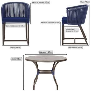 Descubra a Elegancia e Durabilidade da Mesa de Jantar Roma e Cadeiras Noronha. Combinando estilo e resistencia, esta Mesa e cadeiras traz o melhor do design contemporaneo em aluminio com micro pintura e acabamento em corda nautica. O estofado impermeavel completa o conforto e a funcionalidade, tornando-a ideal para ambientes externos e internos.