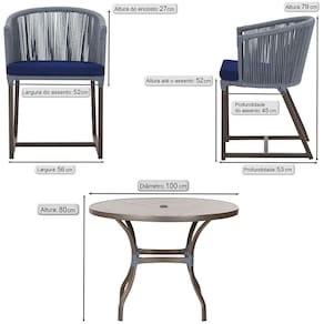 Descubra a Elegancia e Durabilidade da Mesa de Jantar Roma e Cadeiras Noronha. Combinando estilo e resistencia, esta Mesa e cadeiras traz o melhor do design contemporaneo em aluminio com micro pintura e acabamento em corda nautica. O estofado impermeavel completa o conforto e a funcionalidade, tornando-a ideal para ambientes externos e internos.