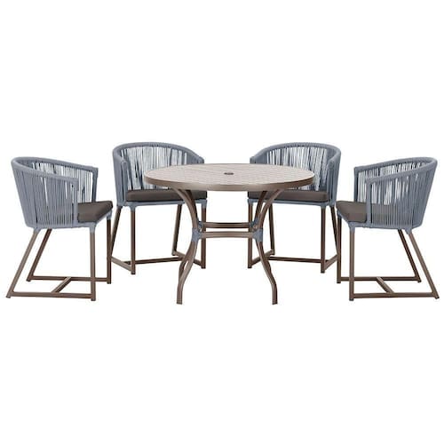 Produto conhecido como: mesa e cadeiras, Jogo de jantar, Estofado impermeavel, Moveis de exterior, Cadeira resistente a agua, Cadeira estofada, Cadeira para area externa, Cadeira de jardim, Moveis para varanda, Cadeira duravel, Cadeira de alta qualidade, Conforto em Cadeira, Cadeira elegante