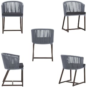 Descubra a Elegancia e Durabilidade da Mesa de Jantar Roma e Cadeiras Noronha. Combinando estilo e resistencia, esta Mesa e cadeiras traz o melhor do design contemporaneo em aluminio com micro pintura e acabamento em corda nautica. O estofado impermeavel completa o conforto e a funcionalidade, tornando-a ideal para ambientes externos e internos.