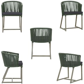 Descubra a Elegancia e Durabilidade da Mesa de Jantar Roma e Cadeiras Noronha. Combinando estilo e resistencia, esta Mesa e cadeiras traz o melhor do design contemporaneo em aluminio com micro pintura e acabamento em corda nautica. O estofado impermeavel completa o conforto e a funcionalidade, tornando-a ideal para ambientes externos e internos.