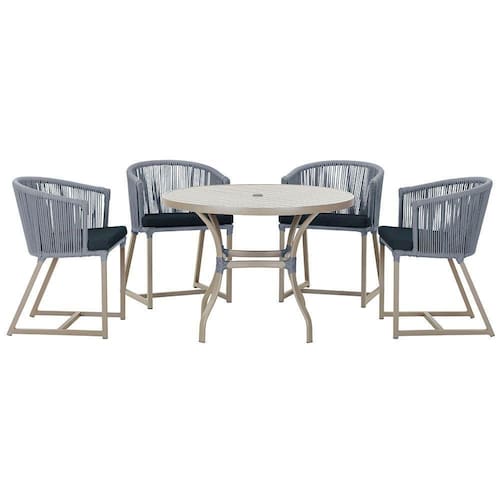 Produto conhecido como: mesa e cadeiras, Jogo de jantar, Estofado impermeavel, Moveis de exterior, Cadeira resistente a agua, Cadeira estofada, Cadeira para area externa, Cadeira de jardim, Moveis para varanda, Cadeira duravel, Cadeira de alta qualidade, Conforto em Cadeira, Cadeira elegante