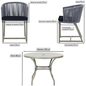 Descubra a Elegancia e Durabilidade da Mesa de Jantar Roma e Cadeiras Noronha. Combinando estilo e resistencia, esta Mesa e cadeiras traz o melhor do design contemporaneo em aluminio com micro pintura e acabamento em corda nautica. O estofado impermeavel completa o conforto e a funcionalidade, tornando-a ideal para ambientes externos e internos.