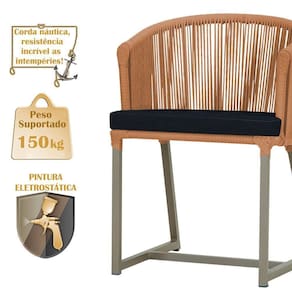 Descubra a Elegancia e Durabilidade da Mesa de Jantar Roma e Cadeiras Noronha. Combinando estilo e resistencia, esta Mesa e cadeiras traz o melhor do design contemporaneo em aluminio com micro pintura e acabamento em corda nautica. O estofado impermeavel completa o conforto e a funcionalidade, tornando-a ideal para ambientes externos e internos.