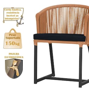 Descubra a Elegancia e Durabilidade da Mesa de Jantar Roma e Cadeiras Noronha. Combinando estilo e resistencia, esta Mesa e cadeiras traz o melhor do design contemporaneo em aluminio com micro pintura e acabamento em corda nautica. O estofado impermeavel completa o conforto e a funcionalidade, tornando-a ideal para ambientes externos e internos.