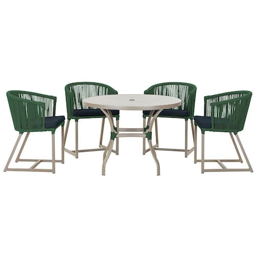 Produto conhecido como: mesa e cadeiras, Jogo de jantar, Estofado impermeavel, Moveis de exterior, Cadeira resistente a agua, Cadeira estofada, Cadeira para area externa, Cadeira de jardim, Moveis para varanda, Cadeira duravel, Cadeira de alta qualidade, Conforto em Cadeira, Cadeira elegante