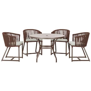 Mesa Com 4 Cadeiras E Noronha Estofado 3 Trama Marrom