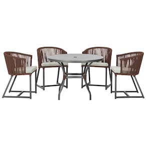 Produto conhecido como: mesa e cadeiras, Jogo de jantar, Estofado impermeavel, Moveis de exterior, Cadeira resistente a agua, Cadeira estofada, Cadeira para area externa, Cadeira de jardim, Moveis para varanda, Cadeira duravel, Cadeira de alta qualidade, Conforto em Cadeira, Cadeira elegante