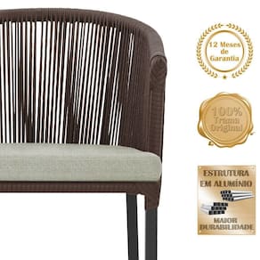 Descubra a Elegancia e Durabilidade da Mesa de Jantar Roma e Cadeiras Noronha. Combinando estilo e resistencia, esta Mesa e cadeiras traz o melhor do design contemporaneo em aluminio com micro pintura e acabamento em corda nautica. O estofado impermeavel completa o conforto e a funcionalidade, tornando-a ideal para ambientes externos e internos.