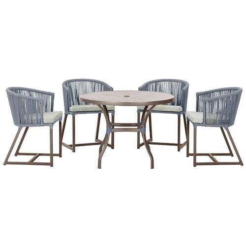 Descubra a Elegancia e Durabilidade da Mesa de Jantar Roma e Cadeiras Noronha. Combinando estilo e resistencia, esta Mesa e cadeiras traz o melhor do design contemporaneo em aluminio com micro pintura e acabamento em corda nautica. O estofado impermeavel completa o conforto e a funcionalidade, tornando-a ideal para ambientes externos e internos.