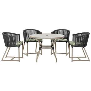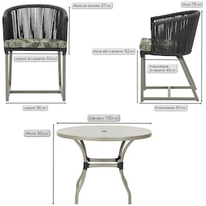 Descubra a Elegancia e Durabilidade da Mesa de Jantar Roma e Cadeiras Noronha. Combinando estilo e resistencia, esta Mesa e cadeiras traz o melhor do design contemporaneo em aluminio com micro pintura e acabamento em corda nautica. O estofado impermeavel completa o conforto e a funcionalidade, tornando-a ideal para ambientes externos e internos.