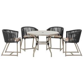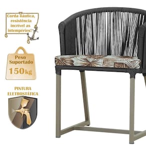 Descubra a Elegancia e Durabilidade da Mesa de Jantar Roma e Cadeiras Noronha. Combinando estilo e resistencia, esta Mesa e cadeiras traz o melhor do design contemporaneo em aluminio com micro pintura e acabamento em corda nautica. O estofado impermeavel completa o conforto e a funcionalidade, tornando-a ideal para ambientes externos e internos.