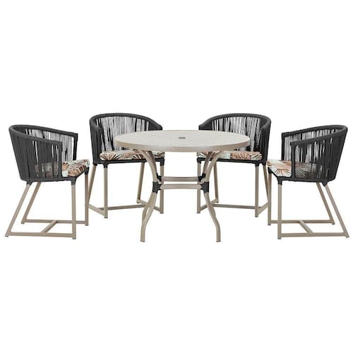 Produto conhecido como: mesa e cadeiras, Jogo de jantar, Estofado impermeavel, Moveis de exterior, Cadeira resistente a agua, Cadeira estofada, Cadeira para area externa, Cadeira de jardim, Moveis para varanda, Cadeira duravel, Cadeira de alta qualidade, Conforto em Cadeira, Cadeira elegante