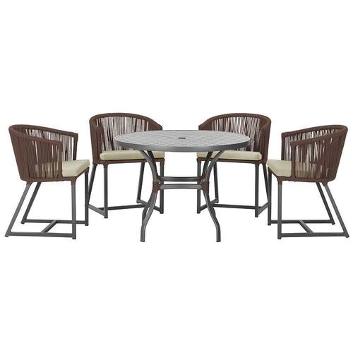 Mesa Com 4 Cadeiras E Noronha Estofado 7 Trama Marrom
