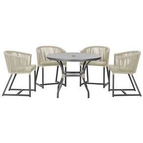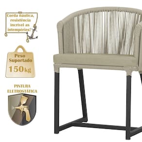 Descubra a Elegancia e Durabilidade da Mesa de Jantar Roma e Cadeiras Noronha. Combinando estilo e resistencia, esta Mesa e cadeiras traz o melhor do design contemporaneo em aluminio com micro pintura e acabamento em corda nautica. O estofado impermeavel completa o conforto e a funcionalidade, tornando-a ideal para ambientes externos e internos.