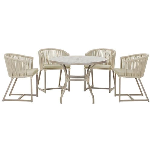 Produto conhecido como: mesa e cadeiras, Jogo de jantar, Estofado impermeavel, Moveis de exterior, Cadeira resistente a agua, Cadeira estofada, Cadeira para area externa, Cadeira de jardim, Moveis para varanda, Cadeira duravel, Cadeira de alta qualidade, Conforto em Cadeira, Cadeira elegante
