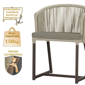 Descubra a Elegancia e Durabilidade da Mesa de Jantar Roma e Cadeiras Noronha. Combinando estilo e resistencia, esta Mesa e cadeiras traz o melhor do design contemporaneo em aluminio com micro pintura e acabamento em corda nautica. O estofado impermeavel completa o conforto e a funcionalidade, tornando-a ideal para ambientes externos e internos.