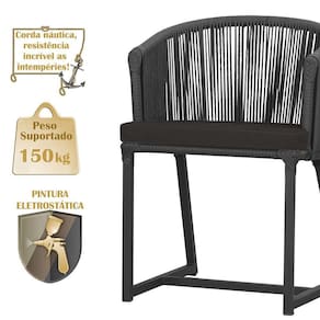Descubra a Elegancia e Durabilidade da Mesa de Jantar Roma e Cadeiras Noronha. Combinando estilo e resistencia, esta Mesa e cadeiras traz o melhor do design contemporaneo em aluminio com micro pintura e acabamento em corda nautica. O estofado impermeavel completa o conforto e a funcionalidade, tornando-a ideal para ambientes externos e internos.