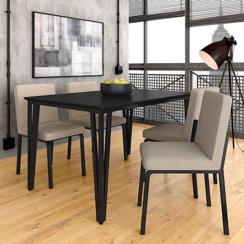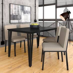 O Conjunto Sala de Jantar Denver com 4 Cadeiras com um design industrial e moderno, perfeito para dar aquele toque convidativo e atraente em seu ambiente!Detalhes Técnicos da Mesa- Pintura UV- Estrutura: Metálica- Tonalidade Mesa: Preto Fosco- Material Tampo: MDF de 25mm- Medida Montada: A:76cm | L:136cm | P:90cmDetalhes Técnicos das Cadeiras- Acabamento: Assento e Encosto Estofados- Almofada Assento: Fixa- Espuma Assento: D16- Espuma Encosto: D14- Cadeira suporta até 90KG- Facilidade Montagem: Média- Tonalidade Cadeiras: Preto Fosco/Linho Bege- Material Estrutura: Metálica- Medida de cada Cadeira: A:86cm | L:44cm | P:54cmConteúdo da Embalagem- Mesa + 04 Cadeiras- Manual de Montagem- Acessórios para MontagemObservações Importantes- As imagens ambientadas são meramente ilustrativas e podem apresentar itens que não incorporam o produto;- Todos os nossos produtos são novos, acompanham documento fiscal e possuem garantia de 3 meses, essa garantia cobre somente defeitos de fabricação;- A entrega só será efetuada no endereço do CEP, caso o endereço seja diferente do CEP informado no pedido, a entrega terá cobrança adicional e o comprador arcará com as despesas;- Não realizamos entregas para zonas rurais, via caminhos fluviais e distritos, por isso não aceitamos CEP GERAL da região;- Não é possível realizar o agendamento de entrega do produto, é necessário que acompanhe o rastreio de seu pedido para saber a previsão de entrega;- As entregas somente serão realizadas para um responsável maior de idade (+18);- Enviamos para diversos estados, sendo assim nossas entregas são realizadas por transportadoras parceiras de nossa empresa. Confira as dimensões antes da compra e certifique-se de que o produto passará por elevadores, portas e corredores já que nossa entrega não inclui a subida de lances de escada, transporte por elevador e o lançamento de produtos, em caso de condomínios residenciais a entrega é feita somente até a portaria. Todas as entregas são realizadas em dias e horários comerciais;- Ao receber os seus produtos observe se a embalagem se encontra em perfeitas condições. Se você adquiriu algum móvel, confira atentamente a quantidade de volumes e o aspecto físico das embalagens. Confira também se a cor do móvel está de acordo com o seu pedido;- O prazo de cancelamento por arrependimento é de até 7 dias corridos a contar da data de recebimento;- Os produtos e assistências são enviados DESMONTADOS, MONTAGENS E DESMONTAGENS recomendamos sempre a contratação de um montador profissional e é válido lembrar que o custo desses serviços é por conta do comprador;- Objetos decorativos que aparecem na foto não acompanham o produto;- Evitar a exposição direta à luz solar e à umidade;- Para limpeza, limpar com pano macio e seco, não utilizar qualquer outro tipo de produtos químicos;- As cores do produto podem variar de acordo com o monitor, a iluminação do ambiente ou sua percepção visual;