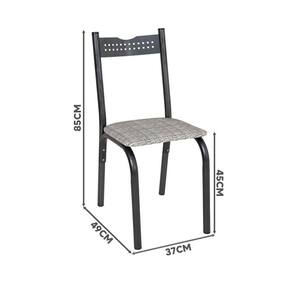 Dimensões:Mesa: Largura 72 cm | Profundidade 110 cm | Altura 76 cmCadeira: Largura 37 cm | Profundidade 49 cm | Altura 85 cmAltura do assento ao chão: 45 cm